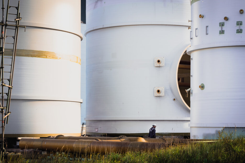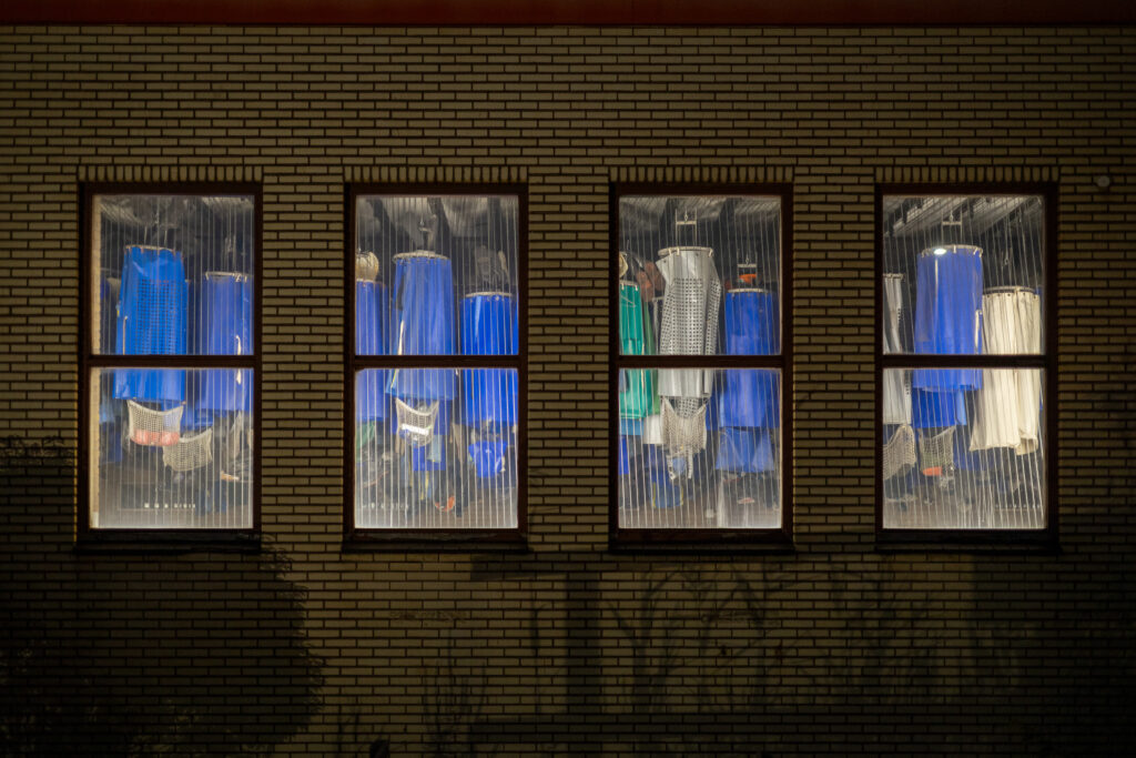 The work considers scale, repetition and presence within an environment structured by continuous industrial processes.